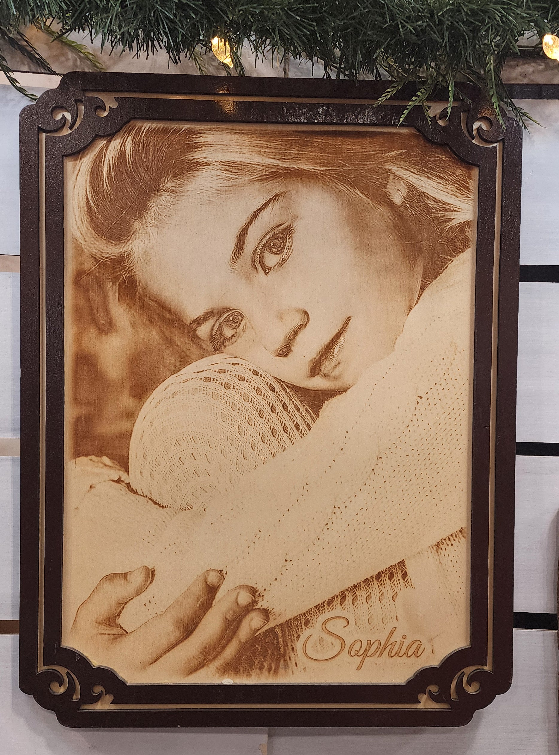 Photo on a plywood plaque with Frame